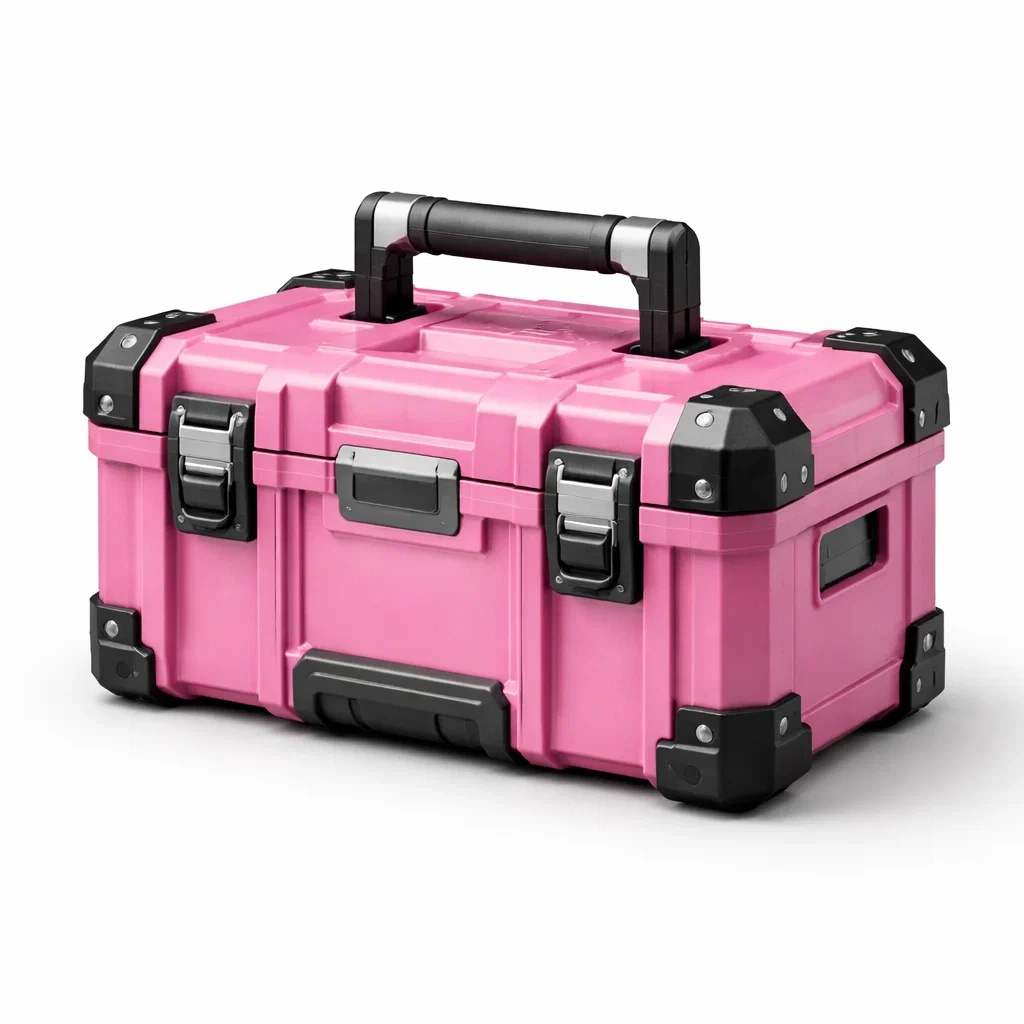 Boîte à outils en plastique rose avec poignée renforcée 45x30x25 cm