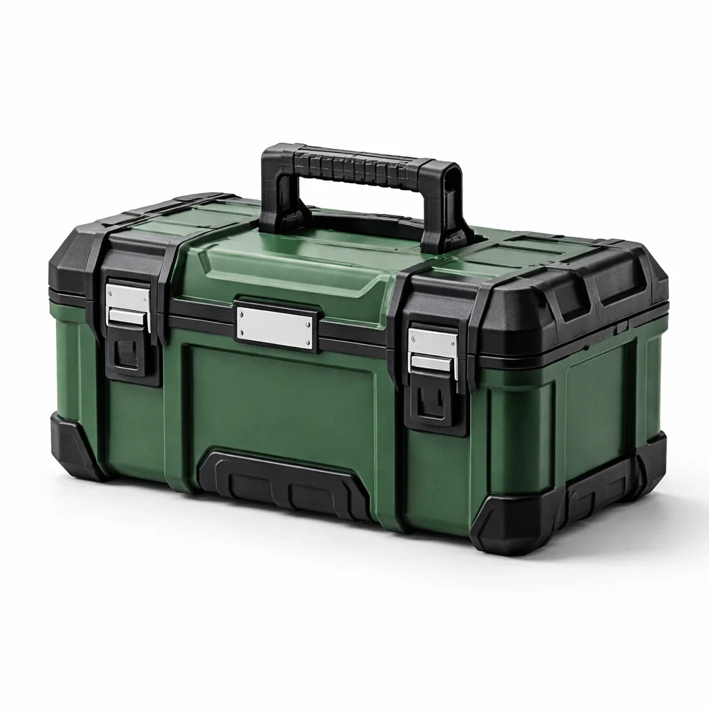 Cette boîte à outils est fabriquée en plastique polypropylène, avec une structure robuste et résistante aux chocs.